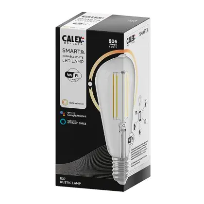 Calex Smart Tuya Wifi E27 Edison Filament 7W 806lm - 818-830 Afstembaar Wit | Dimbaar - Vervangt 60W